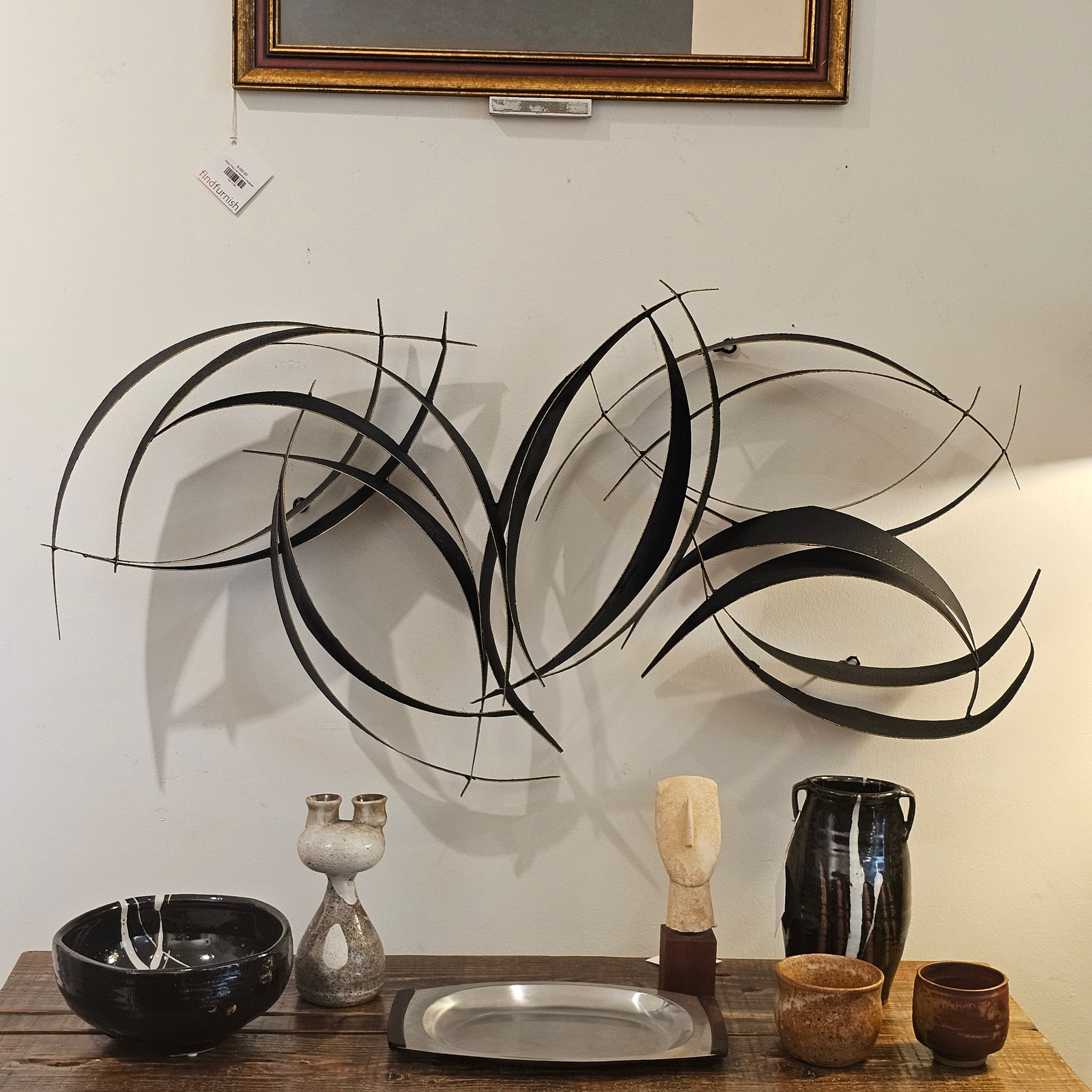 Curtis Jere 'Flight' Black Metal Wall Sculpture. Piece is in overall good condition with minor signs of wear consistent with age. No signature present.