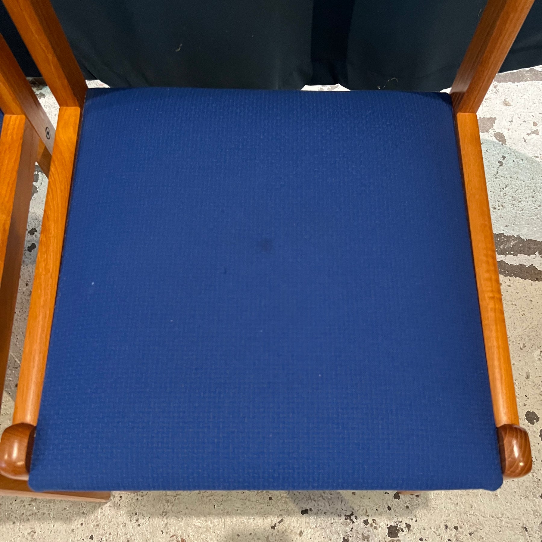 Set of 4 1980s-era teak dining chairs in excellent condition. Upholstery is in great shape, though two of the seats each have a faint small stain (pictured)