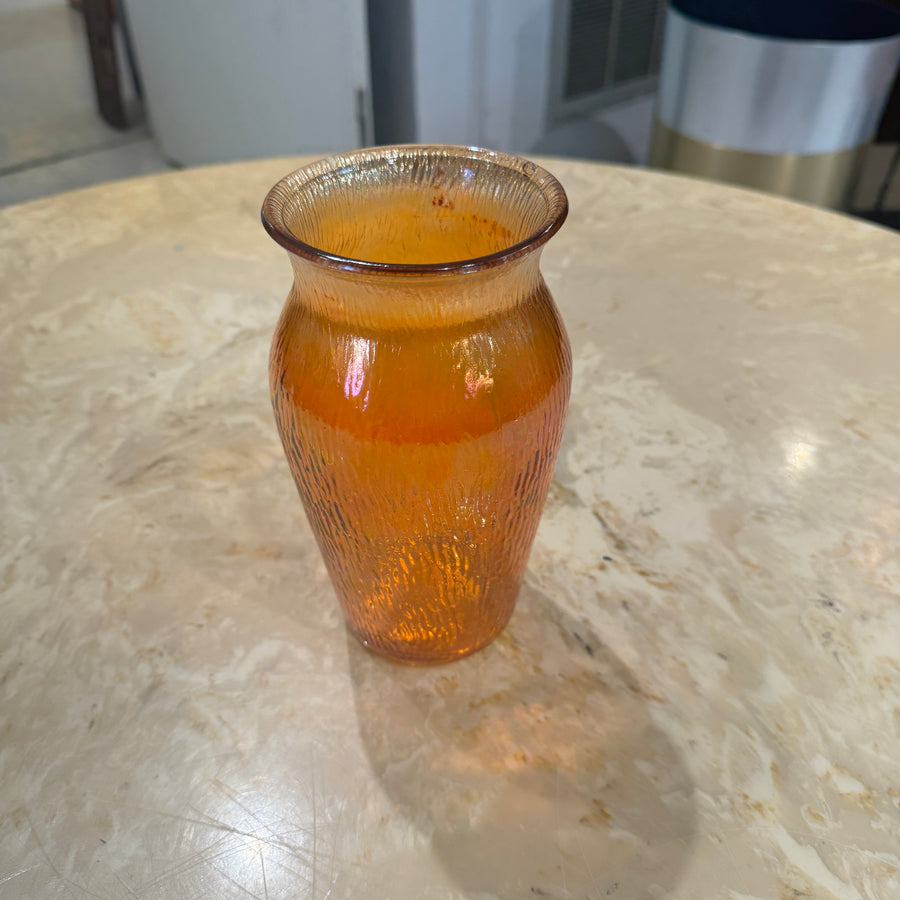 Orange Iridescent Carnival Glass Style Vase