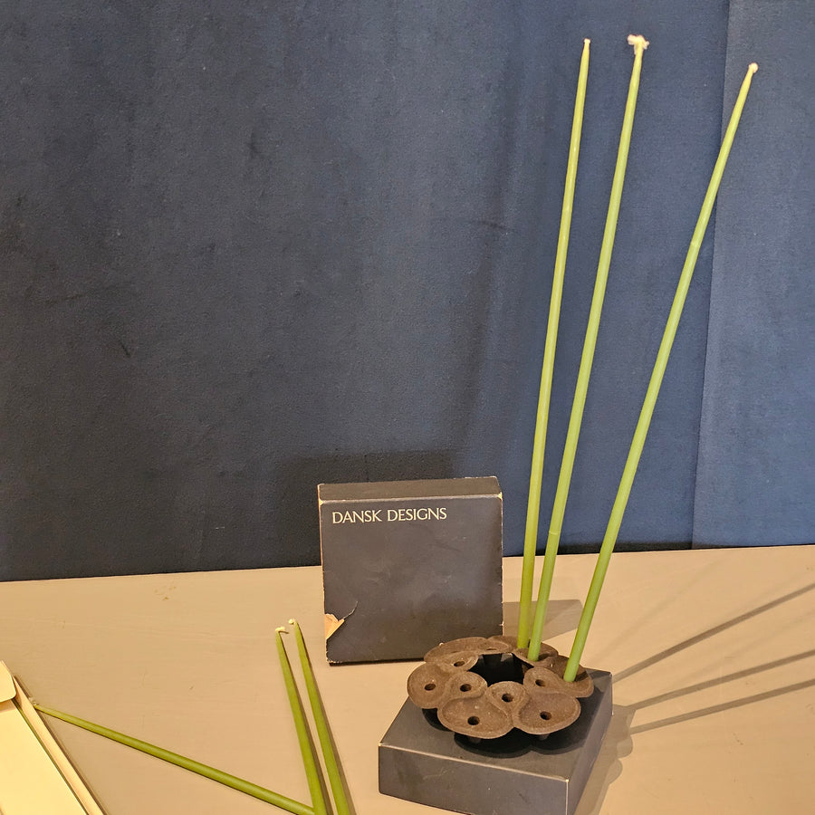 Dansk Lotus Candleholder w/ Green Candles