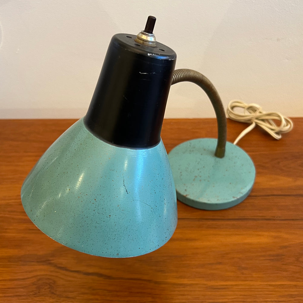 1960s Aqua/Brass Gooseneck Desk Lamp