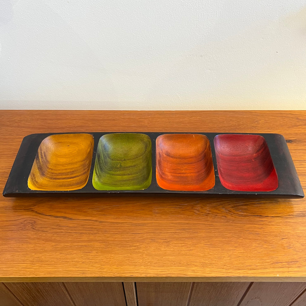 Multicolored Carved Wood Condiment Tray