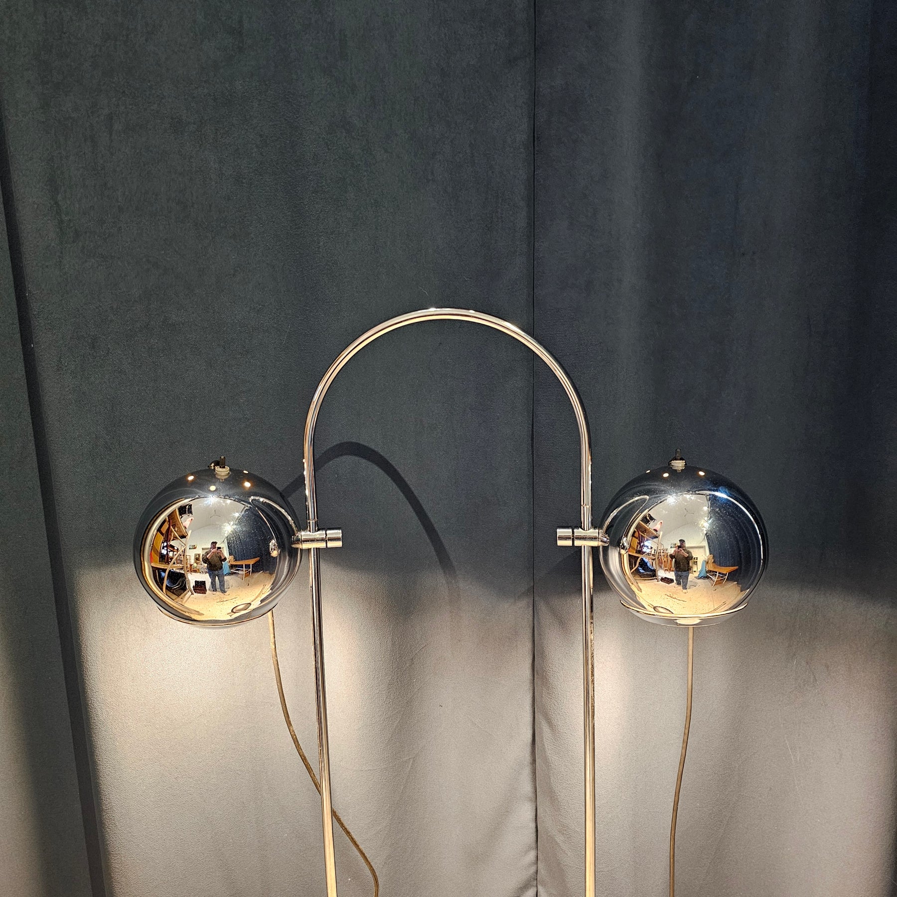 Stunning 1970's Chrome George Kovacs Arc Floor Lamp. Each shade rotates and is adjustable around the full arc. Great overall vintage condition.