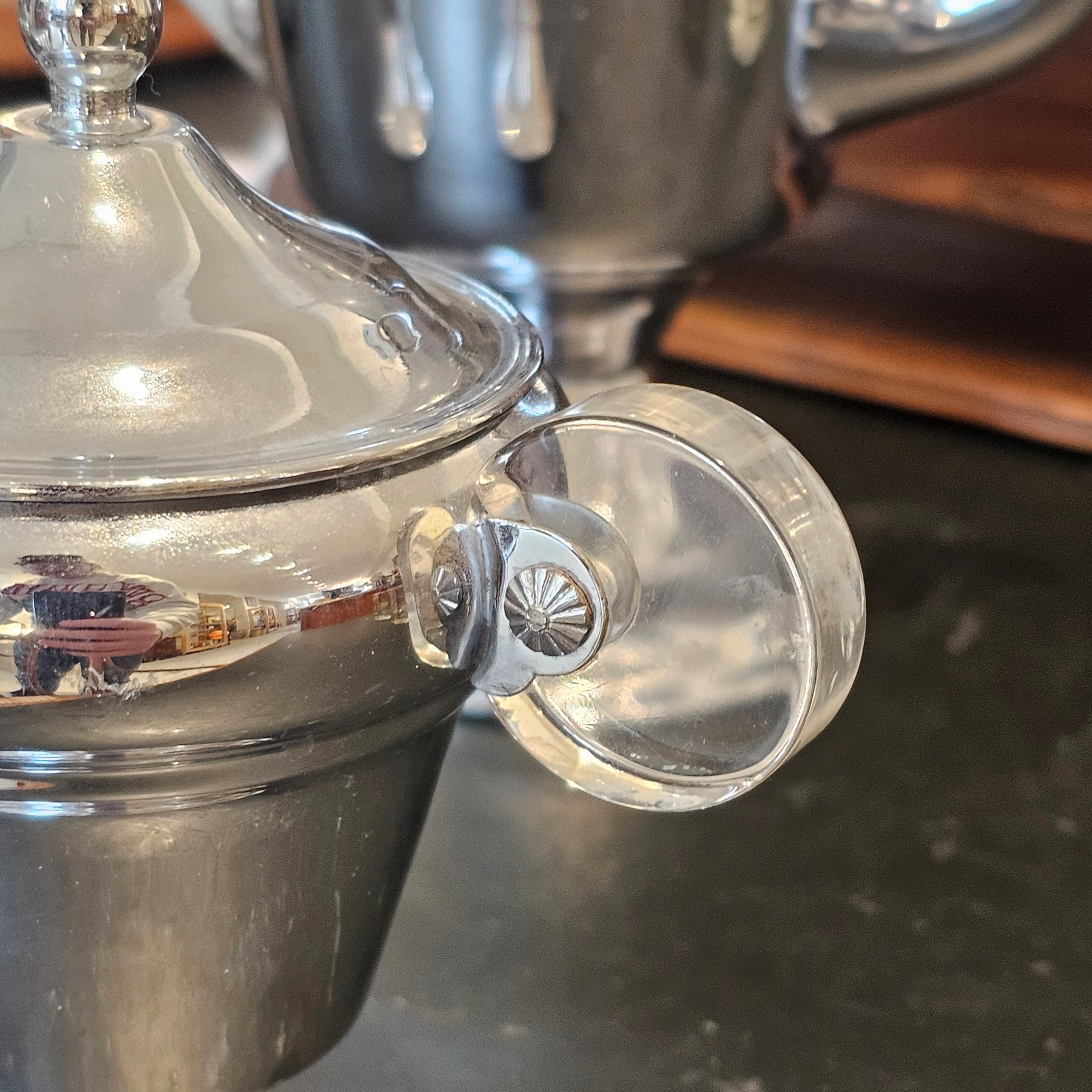Art Deco Style Chrome & Lucite Tea/Coffee Server, along with matching Creamer & Sugar bowl. Good overall condition.