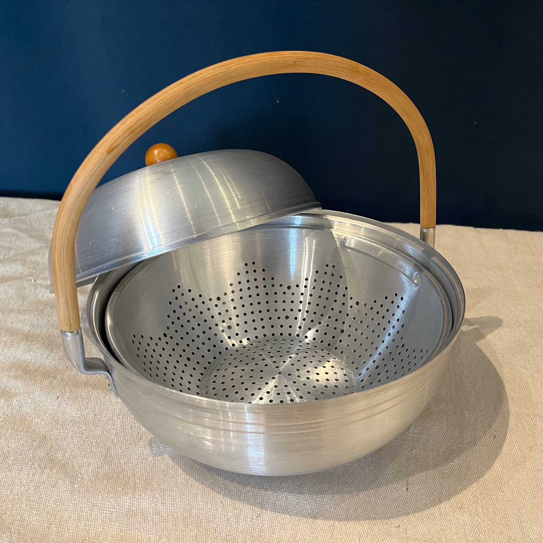 Never used. Bamboo handle, classic design melding form and function. Mirro 3508.