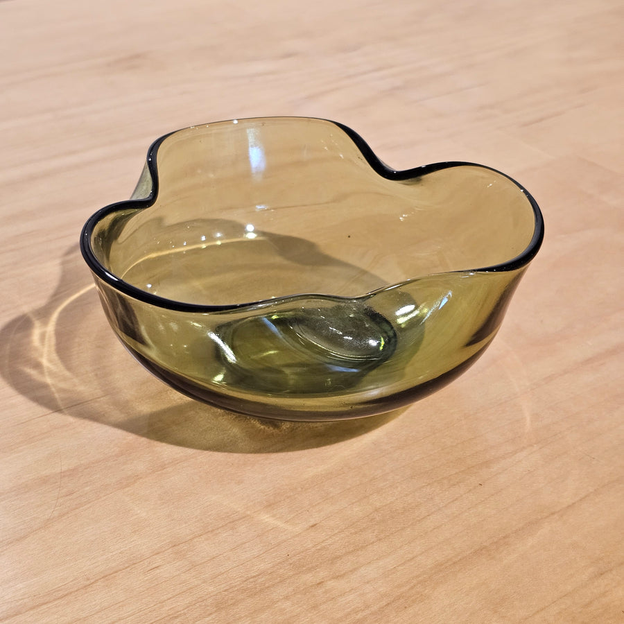Anchor Hocking Green Glass Pinched Serving Bowl
